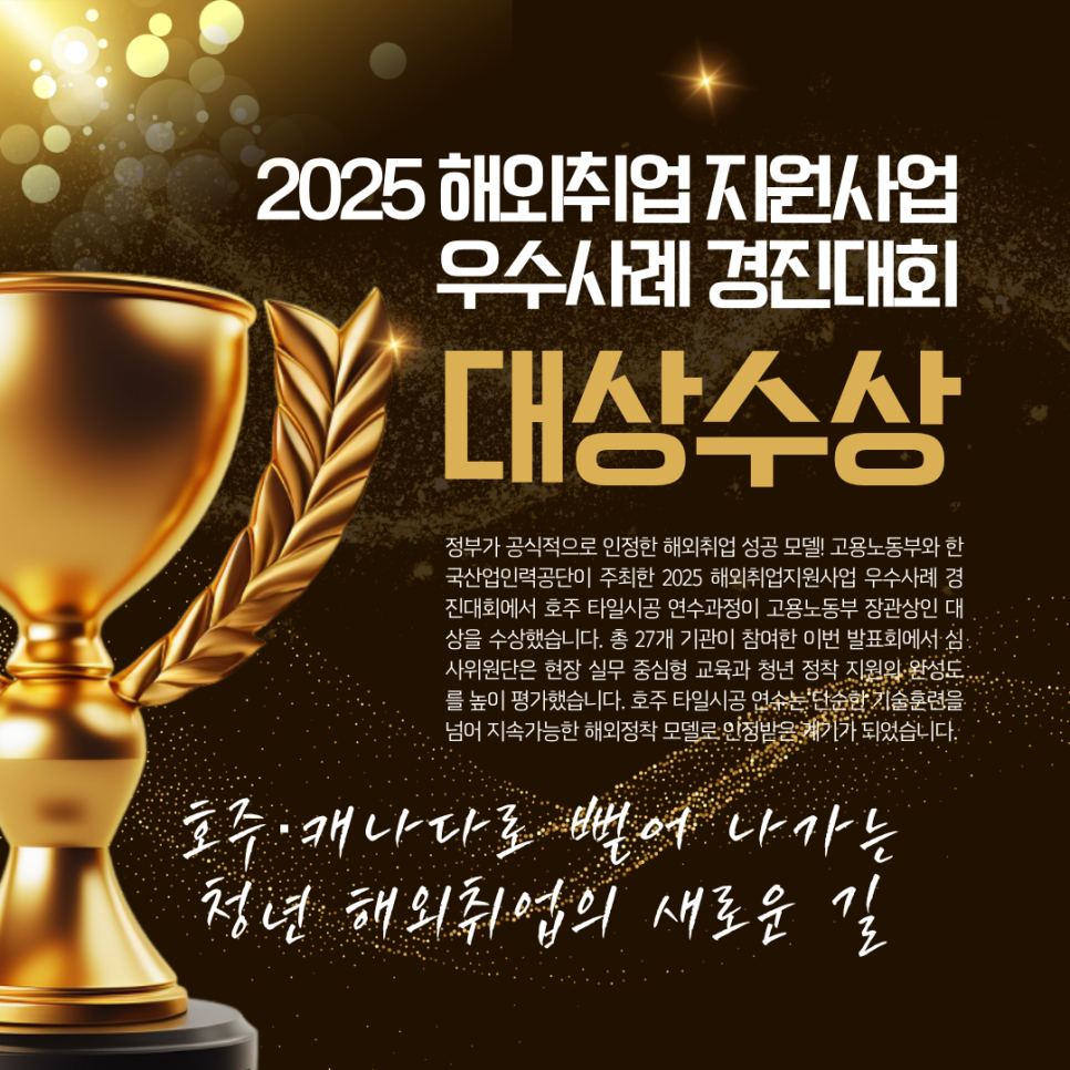 ÇØ¿ÜÃë¾÷ ¼º°ø ¸ðµ¨ 2025 ÇØ¿ÜÃë¾÷Áö¿ø»ç¾÷ ¿ì¼ö»ç·Ê °æÁø´ëȸ¿¡¼ È£ÁÖ Å¸ÀϽðø ¿¬¼ö°úÁ¤ÀÌ °í¿ë³ëµ¿ºÎ Àå°ü»óÀÎ [´ë»ó]À» ¼ö»óÇß½À´Ï´Ù. ![]() ½Ç¹« Áß½ÉÇü ±³À°À» ÅëÇØ È£ÁÖ ¹× ij³ª´Ù·Î »¸¾î°¡´Â ±â¼úÀη ¾ç¼ºÀÇ ±æÀÌ ¿¸®°í ÀÖ½À´Ï´Ù. ✅ Á¤ºÎ°¡ ÀÎÁ¤ÇÑ ÇØ¿ÜÃë¾÷ÀÇ »õ·Î¿î ±âÁØ ±â¼ú·Î ¼¼°è¸¦ °Ç³Ê´Ù 2025³â, ´ëÇѹα¹ û³â ÇØ¿ÜÃë¾÷À» ´ëÇ¥ÇÏ´Â ¹®ÀåÀÔ´Ï´Ù. °í¿ë³ëµ¿ºÎ¿Í Çѱ¹»ê¾÷Àη°ø´ÜÀÌ ÁÖÃÖÇÑ ÇØ¿ÜÃë¾÷Áö¿ø»ç¾÷ ¿ì¼ö»ç·Ê °æÁø´ëȸ¿¡¼ È£ÁÖ Å¸ÀϽðø ¿¬¼ö°úÁ¤ÀÌ ´ë»óÀ» ¼ö»óÇß½À´Ï´Ù. Àü±¹ 27°³ ±â°üÀÌ Âü¿©ÇÑ À̹ø °æÁø´ëȸ¿¡¼ ½É»çÀ§¿ø´ÜÀº 'ÇöÀå ½Ç¹« Áß½ÉÇü ±³À°°ú û³â Á¤Âø Áö¿øÀÇ ¿Ï¼ºµµ'¸¦ ³ôÀÌ Æò°¡Çß½À´Ï´Ù. È£ÁÖ Å¸ÀϽðø ¿¬¼ö °úÁ¤Àº ´Ü¼øÇÑ ±â¼ú ÈÆ·ÃÀ» ³Ñ¾î, 'Áö¼Ó °¡´ÉÇÑ ÇØ¿Ü Á¤Âø ¸ðµ¨'·Î ÀÎÁ¤¹Þ´Â °è±â°¡ µÇ¾ú½À´Ï´Ù. ![]() ✅ '´ë»ó' ¼ö»ó, ÇöÀå Áß½ÉÇü ±³À° ´ö ÈÞ°ÇÃà±â¼úÇпøÀº ½ÇÁ¦ È£ÁÖ ÇöÁö ŸÀÏ ±â¼úÀÚ Ãâ½ÅÀÇ °»çÁø°ú ´ëÇ¥·Î ±¸¼ºµÇ¾î ÀÖ½À´Ï´Ù. ±³À°»ýµéÀº ±â¼ú ½Àµæ»Ó¸¸ ¾Æ´Ï¶ó ½ÇÁ¦ ½Ã°ø ÇöÀåÀÇ ÀÛ¾÷ È帧, ¾ÈÀü ¼öÄ¢, ±Ù·Î ¹®È, È£ÁÖ »ýȰ±îÁöµµ üµæÇÒ ¼ö ÀÖ½À´Ï´Ù. ƯÈ÷ ¿ù 1ȸ ÀÌ»ó ÁøÇàµÇ´Â ½ÉÃþ¸é´ã ¹× »ó´ãȰµ¿ µîÀ» ÅëÇØ Èñ¸Á Áö¿ª(½Ãµå´Ï, ÆÛ½º, ĵ¹ö¶ó, ¼±»þÀÎÄÚ½ºÆ® µî)±îÁö °í·ÁÇÑ ¸ÅĪ ½Ã½ºÅÛÀÌ ³ôÀº Æò°¡¸¦ ¹Þ¾Ò½À´Ï´Ù. °á°úÀûÀ¸·Î ¸¹Àº ¿¬¼ö»ýµéÀÌ ¿öŷȦ¸®µ¥À̺ñÀÚ ¡æ ¼¼ÄÁºñÀÚ ¡æ Àå±â Ãë¾÷ºñÀÚ ¡æ ¿µÁÖ±ÇÀ¸·Î À̾îÁö´Â ½ÇÁúÀûÀÎ °æ·Î¸¦ ¹â°í ÀÖ½À´Ï´Ù. ÀÌ Á¡ÀÌ ¹Ù·Î '´ë»ó' ¼ö»óÀÇ ÇÙ½É ÀÌÀ¯ÀÔ´Ï´Ù ✅ ÈÞ°ÇÃà±â¼úÇпø, °°Àº ¹æÇâÀ¸·Î ³ª¾Æ°¡´Â ÆÄÆ®³Ê ÈÞ°ÇÃà±â¼úÇпøÀº ÀÌ·¯ÇÑ ±³À°Ã¶ÇÐÀ» ¹ÙÅÁÀ¸·Î È£ÁÖ ¹× ij³ª´ÙÀÇ ÇØ¿ÜÃë¾÷ ¹× ±â¼úÀ̹Π°úÁ¤À» ¿î¿µÇϰí ÀÖ½À´Ï´Ù. ÇöÀç 25±â~27±â Á¹¾÷»ýÀÌ È£ÁÖ ºê¸®Áî¹ø, ÆÛ½º, °ñµåÄÚ½ºÆ® ÇöÀå¿¡¼ ÇöÁö ŸÀÏ·¯·Î ±Ù¹« ÁßÀ̸ç, 2026³â¿¡´Â ij³ª´Ù °ÇÃà±â¼úÀÚ Àη ¾ç¼º °úÁ¤ 1±â°¡ Ãâ¹üÇÒ ¿¹Á¤ÀÔ´Ï´Ù. ÈÞ°ÇÃà±â¼úÇпø¿¡¼ °Á¶ÇÏ´Â °ÍÀº ´Ü¼øÇÑ ÇØ¿ÜÃë¾÷ÀÌ ¾Æ´Õ´Ï´Ù. ½Ç¹« Áß½ÉÀÇ ±â¼ú·ÂÀ¸·Î ¼¼°è °Ç¼³ ÇöÀå¿¡ ÁøÃâÇÏ´Â °Í, ±× ÀÚü°¡ û³â ¼¼´ëÀÇ »õ·Î¿î °æÀï·ÂÀÌ¶ó º¸°í ÀÖ½À´Ï´Ù. ✅ Á¤ºÎµµ ÀÎÁ¤ÇÑ ½Ç¹«Çü ÇØ¿ÜÃë¾÷ ¿ÃÇØ °æÁø´ëȸ¿¡¼´Â ÆÐ½ºÆ®Æ®·¢(Fast-Track) °úÁ¤°ú ±â¾÷ ¸ÂÃãÇü ¿¬¼ö°úÁ¤ÀÌ »õ·Ó°Ô ¹ßÇ¥µÇ¾ú½À´Ï´Ù. ÀÌ´Â ÀÏÁ¤ ¼öÁØÀÇ ¾îÇС¤Á÷¹«¿ª·®À» °®Ãá û³â¿¡°Ô ´Ü±â ÁýÁß±³À°À» ÅëÇØ ºü¸¥ ÇØ¿ÜÃë¾÷À» Áö¿øÇÏ´Â Á¦µµÀÔ´Ï´Ù. ÈÞ°ÇÃà±â¼úÇпø ¿ª½Ã ÀÌ·¯ÇÑ ¹æÇ⼺°ú ¹ß¸ÂÃß¾î ±â¼ú + ¾îÇÐ + ÇöÀå ÀûÀÀ·ÂÀ» °âºñÇÑ ÀÎÀ縦 ¾ç¼ºÇϰí ÀÖ½À´Ï´Ù. ¡°À̹ø °æÁø´ëȸ´Â û³âµé¿¡°Ô º¸´Ù ¾ÈÀüÇÏ°í ½Å·ÚÇÒ ¼ö ÀÖ´Â ÇØ¿Ü ÁøÃâ ±âȸ¸¦ Á¦°øÇϱâ À§ÇÑ ÀÚ¸®ÀÔ´Ï´Ù.¡± — À̿쿵 Çѱ¹»ê¾÷Àη°ø´Ü ÀÌ»çÀå (Ãâó: ¾Æ½Ã¾ÆÅõµ¥ÀÌ, 2025.11.05) ✅ ±â¼ú·Î ¼¼°è¸¦ °Ç³Ê´Ù, Á¤ºÎ°¡ °ø½ÄÀûÀ¸·Î ÀÎÁ¤ÇÑ ÇØ¿ÜÃë¾÷ ¿ì¼ö»ç·Ê, ±× Çٽɿ¡´Â ½Ç¹« Áß½ÉÇü ±â¼ú±³À°ÀÌ ÀÖ½À´Ï´Ù. ÈÞ°ÇÃà±â¼úÇпøÀº ÀÌ·¯ÇÑ ±³À°Ã¶ÇÐÀ» ¹ÙÅÁÀ¸·Î È£ÁÖ¡¤Ä³³ª´Ù ÇöÀå¿¡ ÀûÇÕÇÑ Àü¹® ÀÎÀ縦 Ű¿ì¸ç, û³âµéÀÌ ±â¼ú·Î ¼¼°è¸¦ °Ç³Ê´Â ¿©Á¤À» ÇÔ²²Çϰí ÀÖ½À´Ï´Ù. 📍 ÈÞ°ÇÃà±â¼úÇпø īī¿Àä³Î »ó´ãÇϱâ 📍 ÈÞ°ÇÃà±â¼úÇпø Ä«Æä ¹Ù·Î°¡±â 📍 ÈÞ°ÇÃà±â¼úÇпø ºí·Î±× ¹Ù·Î°¡±â 📍 ÈÞ°ÇÃà±â¼úÇпø À§Ä¡ : ±¤ÁÖ±¤¿ª½Ã ºÏ±¸ ¿¬¾ç·Î 36 401È£ |