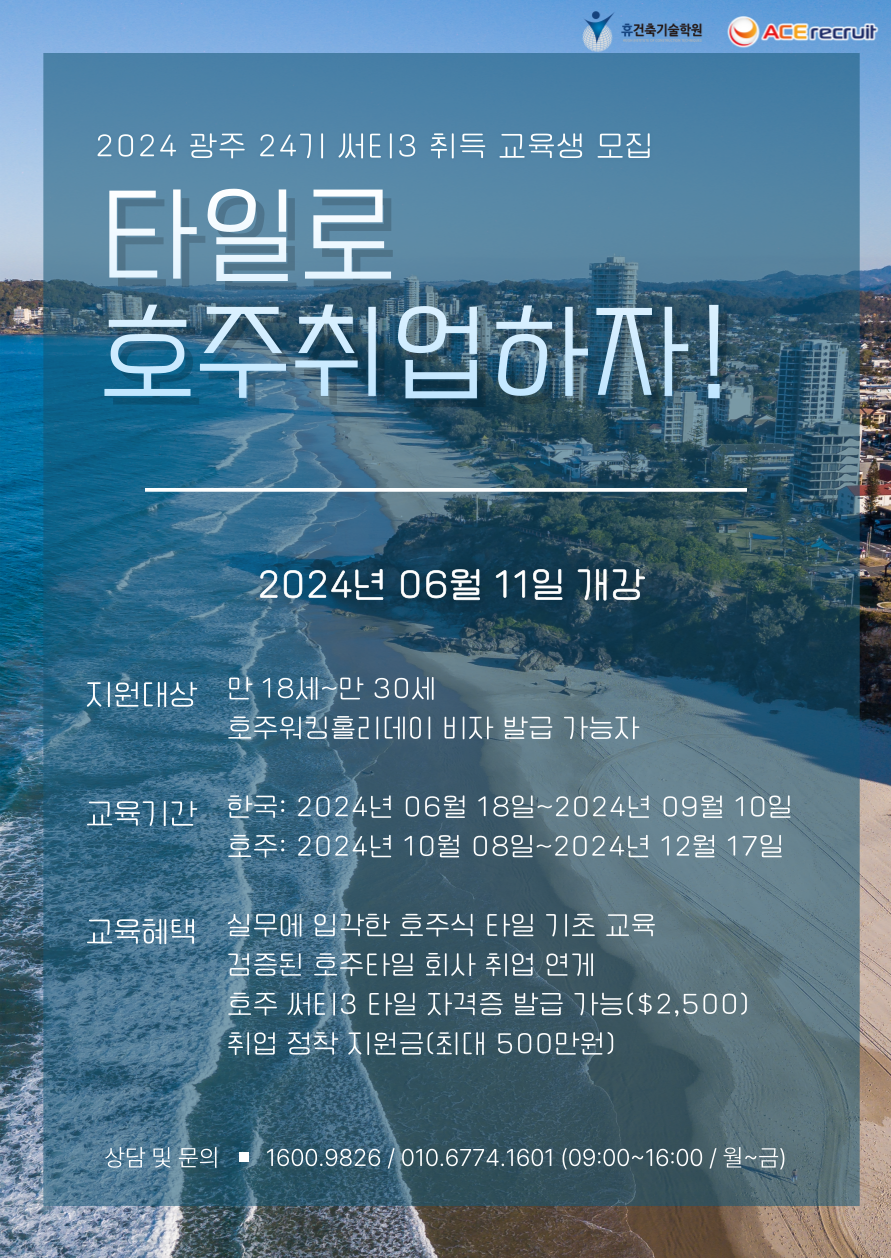 | Á¦¸ñ | 2024³â »ó¹Ý±â È£ÁÖ Å¸ÀÏ·¯(½áƼ3 Ãëµæ) Ãë¾÷°úÁ¤ ±¤ÁÖ 24±â |