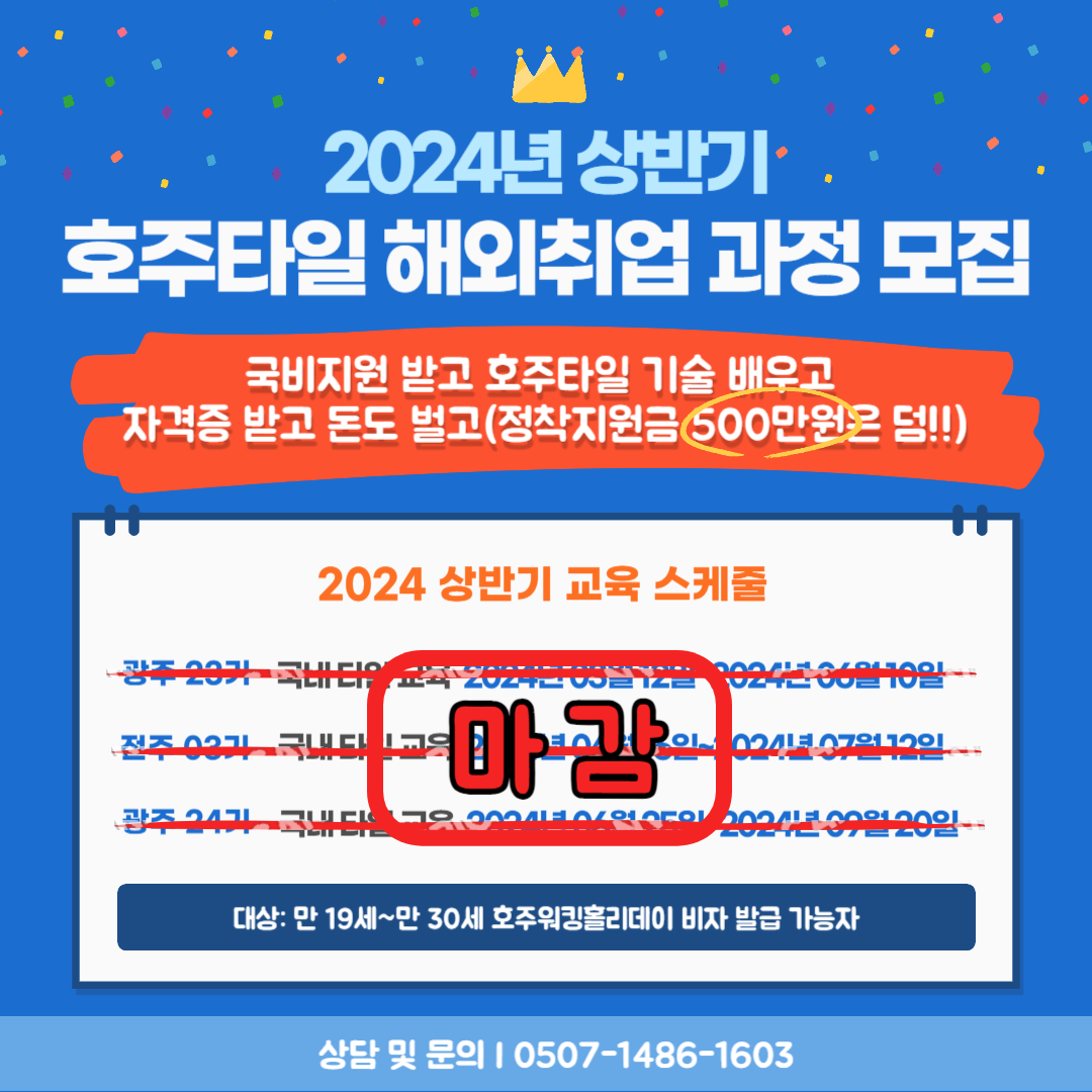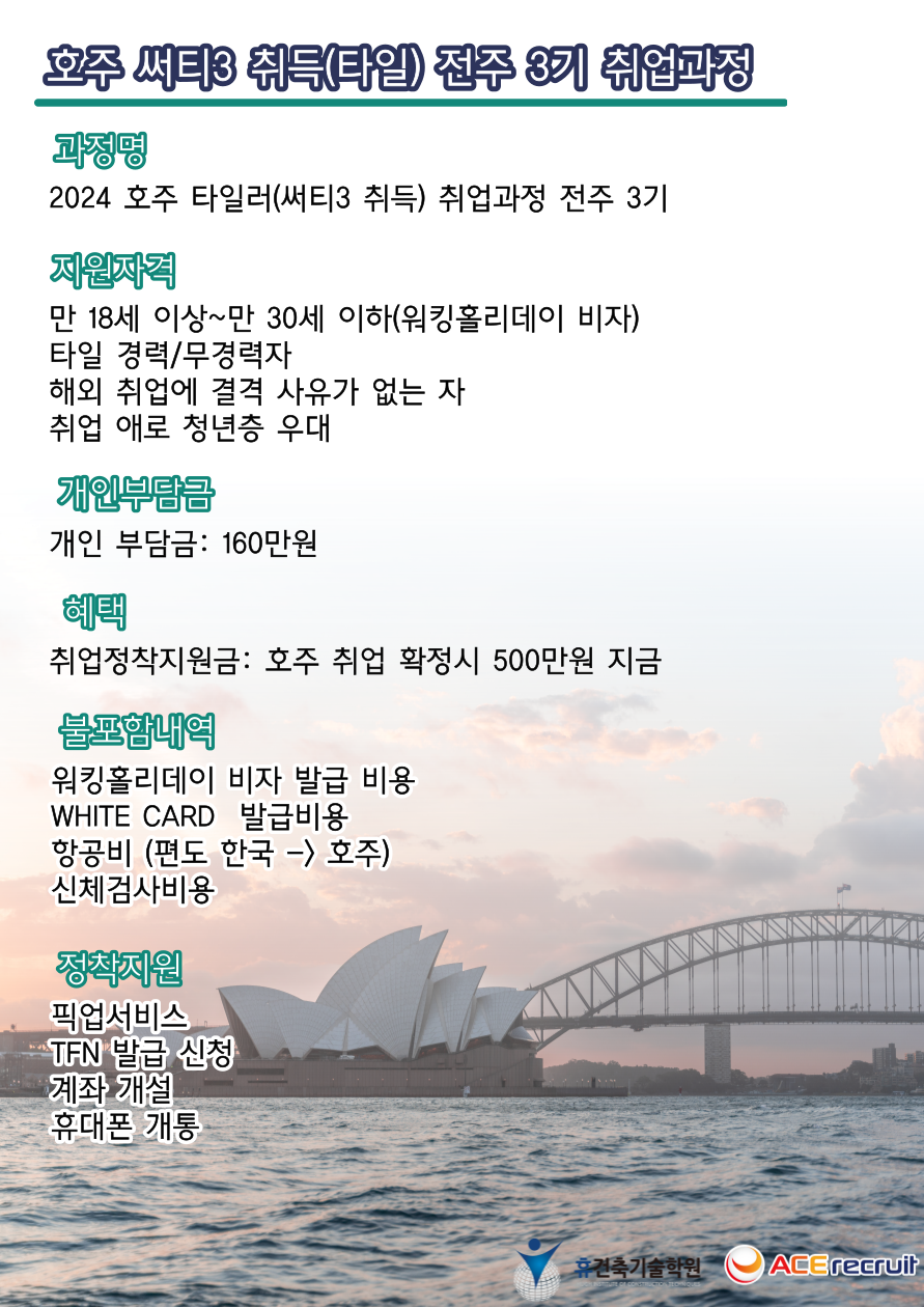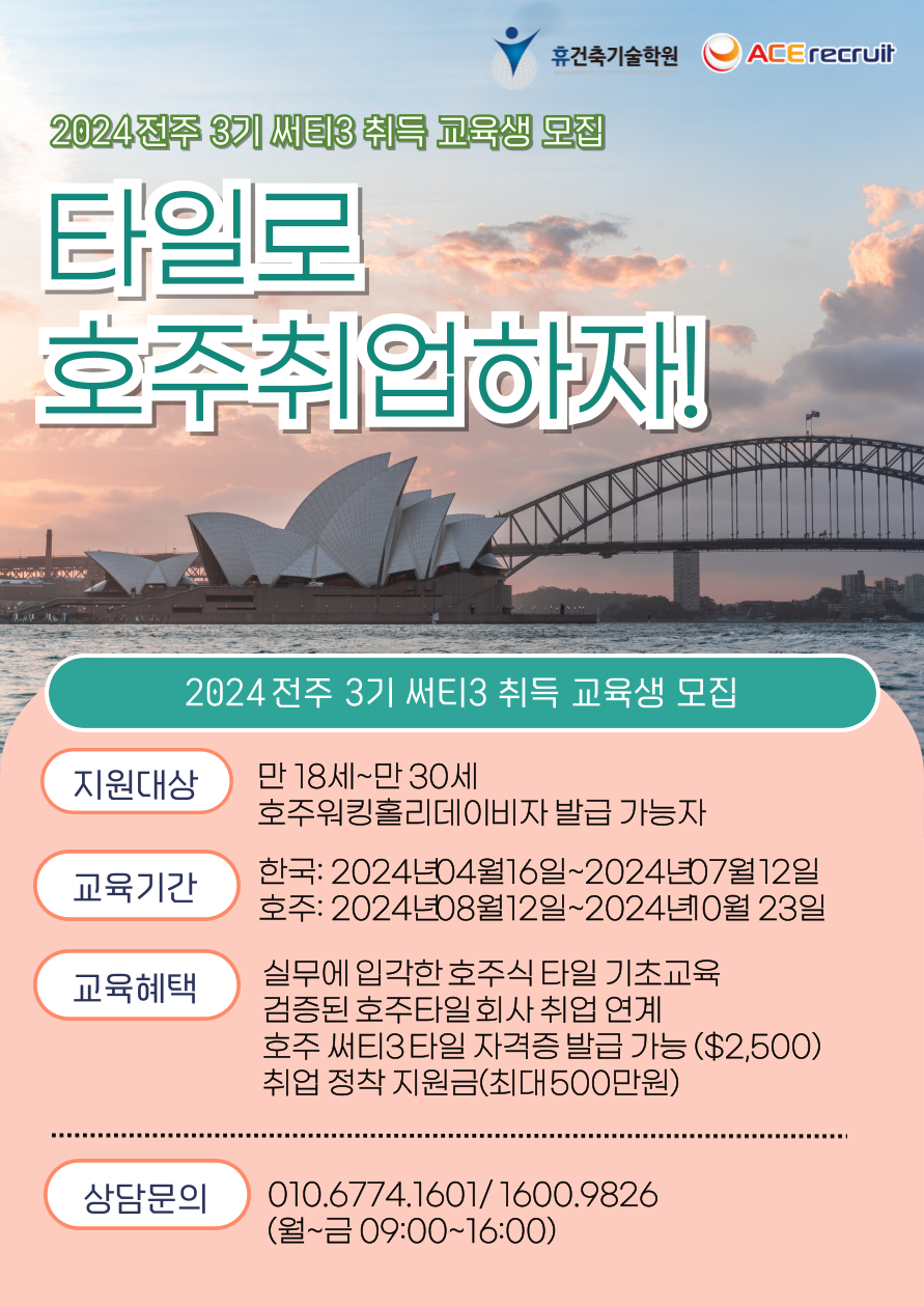 | Á¦¸ñ | 2024³â »ó¹Ý±â È£ÁÖ Å¸ÀÏ·¯(½áƼ3 Ãëµæ) Ãë¾÷°úÁ¤ ÀüÁÖ 3±â |