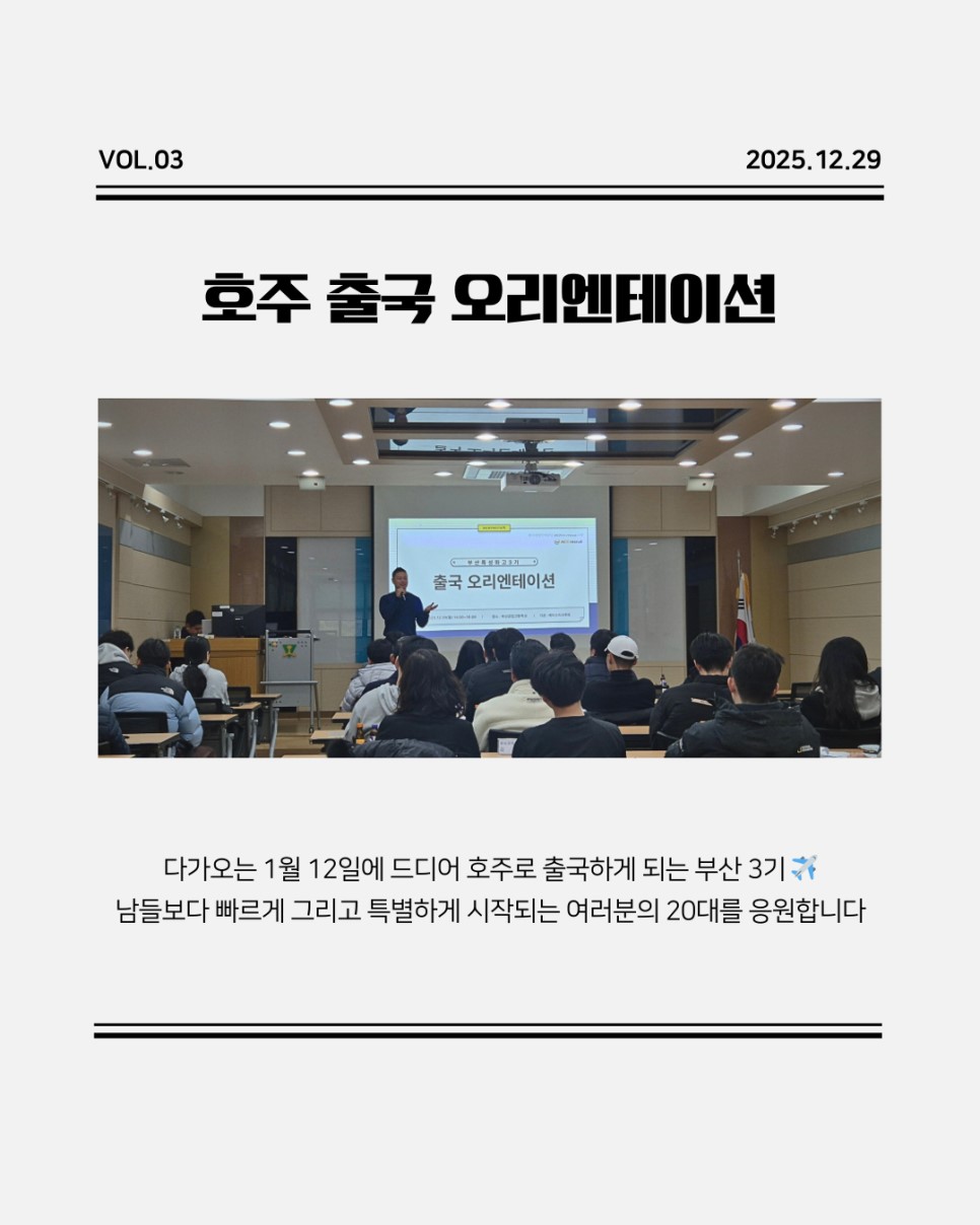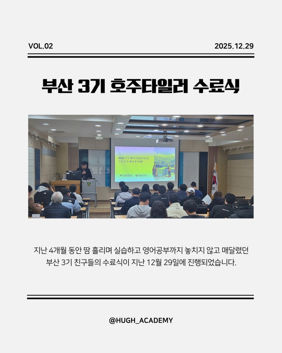 Áö³ÁÖ¿¡´Â ºÎ»ê Ư¼ºÈ°í 3±â ÇлýµéÀÇ È£ÁÖ ÇØ¿ÜÃë¾÷ ŸÀÏ·¯ °úÁ¤ ¼ö·á½ÄÀÌ ÀÖ¾ú½À´Ï´Ù. º¸Åë ¿öŷȦ¸®µ¥À̶ó°í ÇÏ¸é ¹è³¶ Çϳª ¸Þ°í ¹«ÀÛÁ¤ ¶°³ª´Â ÀþÀ½ÀÇ µµÀü °°Àº ¿©ÇàÀ» ¶°¿Ã¸®°í´Â ÇÕ´Ï´Ù. ÇÏÁö¸¸, ¿ì¸® ºÎ»ê 3±â Ä£±¸µéÀº ³²µé°ú Á¶±Ý ´Ù¸¥ ¼±ÅÃÀ» Çß½À´Ï´Ù. È£ÁÖ¿öȦÀ» ¸·¿¬ÇÑ ±â´ë°¨¸¸ °¡Áö°í ¶°³ª±âº¸´Ù´Â, ±â¼úÀ̶ó´Â È®½ÇÇÑ ¹«±â. °æÀï·ÂÀ» °®Ãß°í ¶°³ª´Â ±æÀ» ¼±ÅÃÇ߱⠶§¹®ÀÔ´Ï´Ù. Áö³ 4°³¿ù, Çб³»ýȰ°ú º´ÇàÇÏ¸ç ´©±¸º¸´Ù Ä¡¿ÇÏ°Ô ÁغñÇØ¿Â ÇлýµéÀÇ ¸¶Áö¸· ¼ö·á½Ä ÇöÀåÀ» ¼Ò°³ÇÕ´Ï´Ù. ![]() 4°³¿ù, Çлý¿¡¼ ±â¼úÀÚ·Î ¼ºÀåÇϱâ À§ÇÑ ½Ã°£ È£ÁÖ´Â ±âȸÀÇ ¶¥À̱⵵ ÇÏÁö¸¸, Áغñ ¾øÀÌ ¹«ÀÛÁ¤ ¶°³ª´Â ûÃáµé¿¡°Ô´Â ³ÃȤÇÑ Çö½ÇÀÌ ±â´Ù¸®°í Àֱ⵵ ÇÕ´Ï´Ù. ¾ð¾î°¡ ÅëÇÏÁö ¾Ê°í, Ưº°ÇÑ ±â¼úÀÌ ¾ø´Ù¸é ¾Æ¹«·¡µµ ´Ü¼ø ³ë¹«Á÷À» ÀüÀüÇϱ⠽±±â ¶§¹®ÀÔ´Ï´Ù. ¿ì¸® ºÎ»ê 3±â Ä£±¸µéÀº ÀÌ Á¡¿¡ ´ëÇØ ´©±¸º¸´Ù Àß ¾Ë°í ¹Ì¸® ´ëºñÇß´Ù°í º¼ ¼ö ÀÖ½À´Ï´Ù. ±×·¸±â¿¡ ´Ù¸¥ Ä£±¸µéÀÌ ¼ö´ÉÀÌ ³¡³µ´Ù´Â ÇØ¹æ°¨À» ´À³¢°í ÀÖÀ» ¶§, ºÎ»ê 3±â Ä£±¸µéÀº ŸÀÏ ¼ö¾÷À» ¹ÞÀ¸¸ç ÇϷ羿 ¼ºÀåÇØ°¡°í ÀÖ¾ú½À´Ï´Ù. È£ÁÖ ÇöÀå¿¡¼ Áï½Ã »ç¿ëÇÒ ¼ö Àִ ŸÀÏ ½Ç¹« ±â¼ú ÇØ¿Ü Ãë¾÷ÀÇ Çʼö Á¶°ÇÀÎ Á÷¹« ¿µ¾î È£ÁÖ ÇöÀå ¾ÈÀü ¹× ¹®È ±³À°±îÁö ºÎ»ê 3±â Ä£±¸µéÀÌ º¸³½ 4°³¿ùÀº ³¸¼± È£ÁÖ ¶¥¿¡¼µµ Á¸Áß¹Þ´Â ±â¼úÀÚ·Î ´ë¿ì¹ÞÀ¸¸ç ÀÏÇϱâ À§ÇÑ ÅõÀÚÀÇ ½Ã°£À̾ú½À´Ï´Ù. ![]() ¼ö·á, ±× ÀÌ»óÀÇ ÀÚºÎ½É Áö³ÁÖ ÁøÇàµÇ¾ú´ø ºÎ»ê 3±â ¼ö·á½ÄÀº Áö³ 4°³¿ùÀÇ À̷мö¾÷, ½Ç½À¼ö¾÷, ¿µ¾î¼ö¾÷À» ¹«»çÈ÷ ¸¶Ä£ Ä£±¸µé¿¡°Ô ŸÀÏ ±â¼úÀÚ°¡ µÇ±â À§ÇÑ Ã¹ ¹øÂ° ¹®À» ¿¾îÁÖ¾ú½À´Ï´Ù. 4°³¿ù Àü¸¸ ÇØµµ ŸÀÏ °ø±¸¸¦ Àâ´Â ¼Õ±æµµ ¾î»öÇß´ø Ä£±¸µéÀ̾ú´Âµ¥, ÀÌÁ¦´Â Á¦¹ý ÀÇÁ£ÇÑ ¿¹ºñ ŸÀÏ·¯ÀÇ ¸ð½ÀÀ¸·Î º¯Çß½À´Ï´Ù. ¼ö·á½Ä¿¡ Âü¿©ÇÑ ¸ðµç Ä£±¸µé¿¡°Ô´Â ±â¼úÀ» °¡Áö°í ÀÖ´Ù´Â µçµçÇÑ ÀںνÉÀÌ ¿³º¸À̱⵵ Çß½À´Ï´Ù. ¼ö·á½Ä¿¡¼´Â ³²µéº¸´Ù Á¶±Ý ´õ ÀÏÂï ¹Ì·¡¸¦ °í¹ÎÇϰí, ³²µéº¸´Ù ´õ ¼º½ÇÇÏ°Ô ¹Ì·¡¸¦ À§ÇØ ÁغñÇß´ø ºÎ»ê 3±â Ä£±¸µéÀÇ ¼º½ÇÇÔÀ» ÀÎÁ¤Çϱâ À§ÇÑ ÀÚ¸®À̱⵵ Çß½À´Ï´Ù. ![]() ¼³·½º¸´Ù´Â öÀúÇÔÀ¸·Î, Ãâ±¹ ¿À¸®¿£Å×À̼DZîÁö ¼ö·á½ÄÀÇ ±â»ÝÀ» ³ª´« µÚ, °ð¹Ù·Î À̾îÁø ¼ø¼´Â È£ÁÖ Ãâ±¹À» À§ÇÑ ¿À¸®¿£Å×ÀÌ¼Ç ½Ã°£À̾ú½À´Ï´Ù. ¹«ÀÛÁ¤ ¶°³ª´Â ¿öȦÀÌ ¾Æ´Ï±â ¶§¹®¿¡ ÇлýµéÀÇ ´«ºûÀº ±× ¾î´À ¶§º¸´Ùµµ ÁøÁöÇß½À´Ï´Ù. Ãâ±¹ Àü ì°Ü¾ß ÇÒ ¼·ùºÎÅÍ È£ÁÖ µµÂø Á÷ÈÄ ÇØ¾ß ÇÒ Àϵé, ±×¸®°í È£ÁÖ Ãë¾÷ ÈÄ ÇöÀå¿¡¼ ÁöÄÑ¾ß ÇÏ´Â ¾ÈÀü ¼öÄ¢±îÁö ²Ä²ÄÇÏ°Ô Á¡°ËÇØ º¸´Â ½Ã°£À» °¡Á³½À´Ï´Ù. ºÎ»ê 3±â ÇлýµéÀº °ð Çѱ¹À» ¶°³ª È£ÁÖ¶ó´Â ´õ Å« ¹«´ë·Î ³ª°¥ ¿¹Á¤ÀÔ´Ï´Ù. »õ·Î¿î ȯ°æ¿¡ ÀûÀÀÇÏ´Â °úÁ¤ÀÌ ¹«Á¶°Ç Áñ°Ì°í ½±Áö¸¸Àº ¾ÊÀ» °ÍÀÔ´Ï´Ù. ÇÏÁö¸¸ °ÆÁ¤º¸´Ù ±â´ë°¡ ´õ ¾Õ¼´Â ÀÌÀ¯´Â ºó¼ÕÀ¸·Î ¶°³ªÁö ¾Ê±â ¶§¹®ÀÔ´Ï´Ù. Áö³ 4°³¿ù°£ °¥°í´ÛÀº ±â¼ú°ú ÁغñµÈ ¸¶À½°¡Áü Çϳª¸¸À¸·Îµµ ´Ù¸¥ ¿öȦ·¯µé°úÀÇ °æÀï¿¡¼ ÃæºÐÈ÷ ¿ìÀ§¸¦ Â÷ÁöÇÒ ¼ö ÀÖ½À´Ï´Ù. °Ô´Ù°¡ ÈÞ°ÇÃà±â¼úÇпø Àü ±â¼ö(±¤ÁÖ 26±â, ºÎ»ê 2±â) ¼±¹è´ÔµéÀÇ ³×Æ®¿öÅ©°¡ È£ÁÖ °÷°÷¿¡ ÀÚ¸® Àâ°í Àֱ⠶§¹®¿¡ ´õ µçµçÇÕ´Ï´Ù. ÈÞ°ÇÃà±â¼úÇпøÀº ±³À°ÀÌ ³¡³µ´Ù°í °ü¸®±îÁö ¸ØÃßÁö ¾Ê½À´Ï´Ù. ¿ì¸® ÇлýµéÀÌ È£ÁÖ ÇöÀå¿¡ Àß ÀûÀÀÇÏ°í ¸ÚÁø ŸÀÏ·¯·Î ¼ºÀåÇÏ´Â ±×³¯±îÁö µçµçÇÑ ÈÄ¿øÀÚ°¡ µÇ¾îµå¸± °ÍÀÔ´Ï´Ù. ÁغñµÈ ûÃá, ºÎ»ê 3±â ¿©·¯ºÐµéÀÇ ´ç´çÇÑ È£ÁÖ ¶óÀÌÇÁ¸¦ ÀÀ¿øÇÕ´Ï´Ù 👍 Àß ´Ù³à¿À¼¼¿ä ✈️ 📍 ÈÞ°ÇÃà±â¼úÇпø īī¿Àä³Î »ó´ãÇϱâ 📍 ÈÞ°ÇÃà±â¼úÇпø Ä«Æä ¹Ù·Î°¡±â 📍 ÈÞ°ÇÃà±â¼úÇпø ºí·Î±× ¹Ù·Î°¡±â 📍 ÈÞ°ÇÃà±â¼úÇпø À§Ä¡ : ±¤ÁÖ±¤¿ª½Ã ºÏ±¸ ¿¬¾ç·Î 36 201È£ |