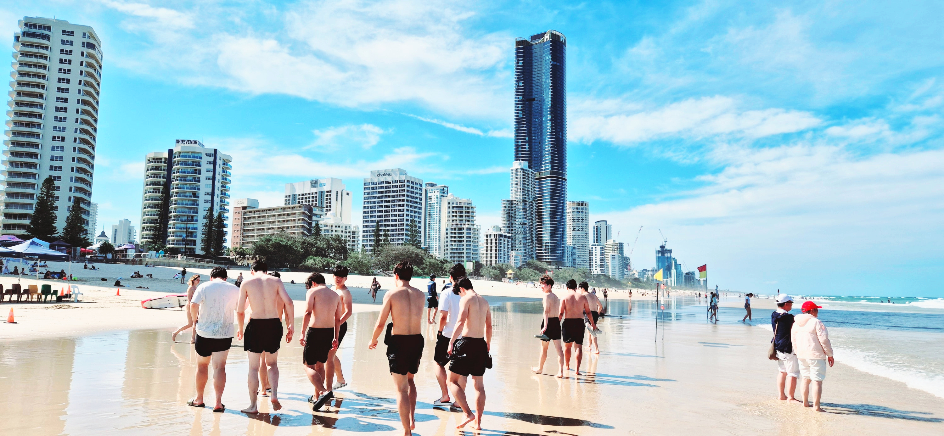 ºÎ»ê02±â ¿¬¼ö»ýµéÀÌ ´Üü·Î ¼ö¿µº¹À» ÀÔ°í µµÂøÇÑ °÷Àº ¼ÆÛ½ºÆÄ¶ó´ÙÀ̽º ºñÄ¡ (sufers paradise beach)ÀÔ´Ï´Ù. À̰÷Àº °ñµåÄÚ½ºÆ®¿¡¼ À¯¸íÇÑ ÈÞ¾çÁöÀä, ¼ÇÎÀ» Áñ±â´Â »ç¶÷µéÀÌ ¸¹ÀÌ µé¸£´Â °÷ÀÔ´Ï´Ù. ¹Ù´å¹°ÀÌ ±ú²ýÇÏ°í ¸ð·¡°¡ ºÎµå·´±â·Î À¯¸íÇѰ÷À̱⵵ ÇÏÁÒ